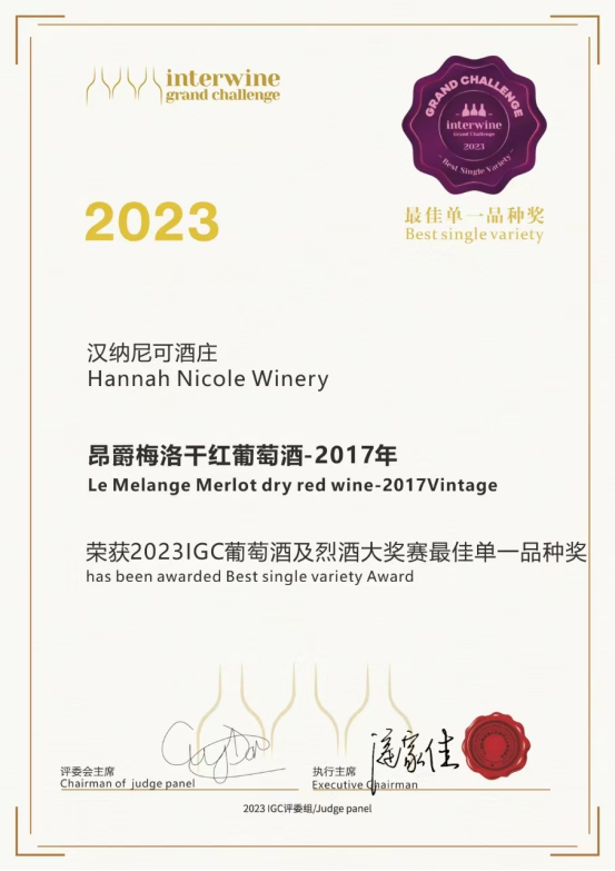 喜贺!昂爵梅洛干红葡萄酒荣获2023IGC葡萄酒及烈酒大奖赛最佳单一品种奖