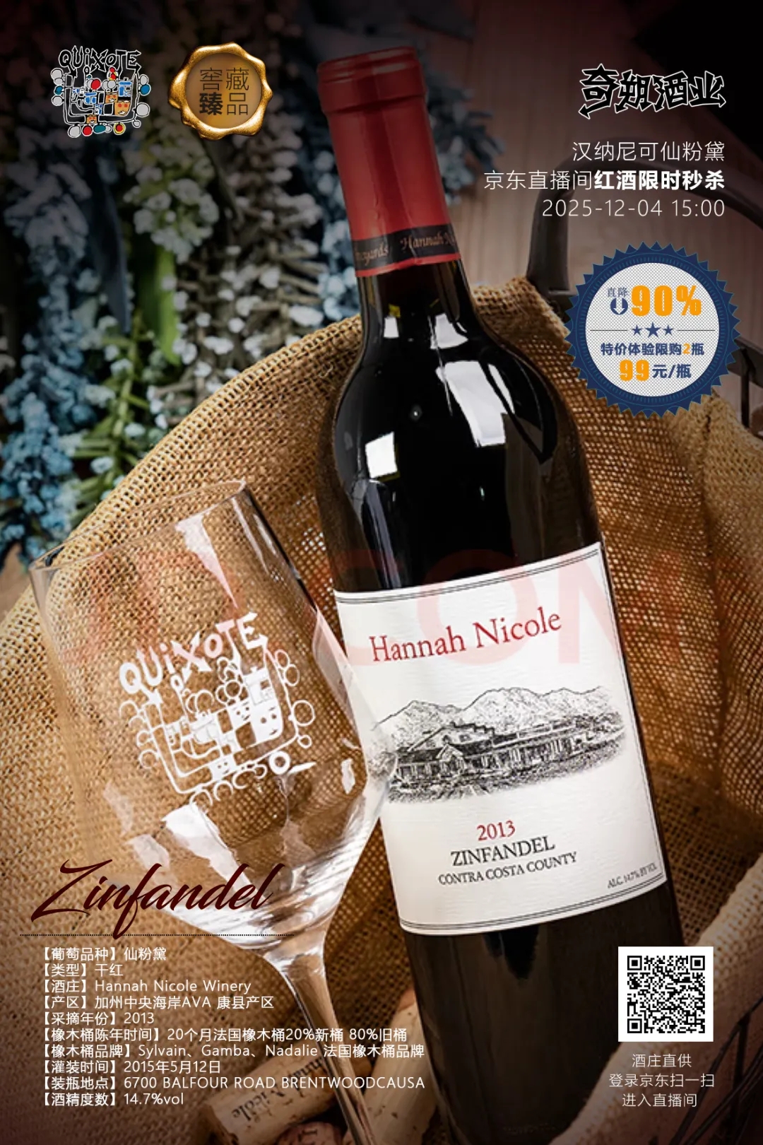 纳帕谷仙粉黛向来是酒桌“硬通货”,但千元价让不少人望而却步!重磅福利来袭——奇朔酒业京东直播间限时秒杀,汉纳尼可仙粉黛直降90%,99元抢原瓶进口名庄酒,每人限购2瓶,错过等一年!