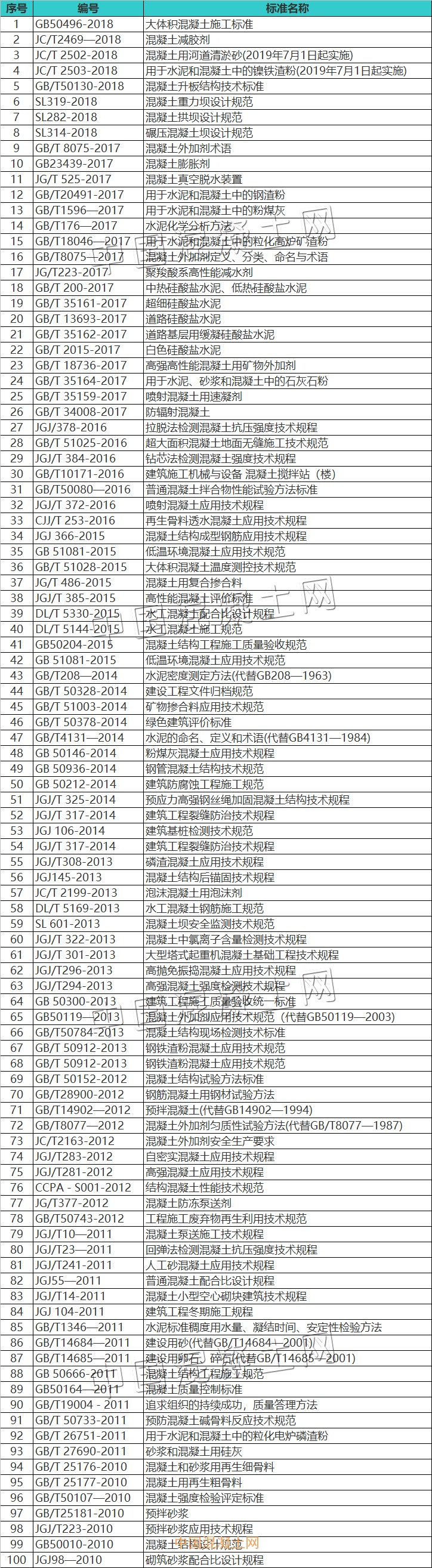 [砼网统计]2019年最新版混凝土行业标准目录