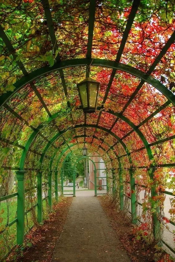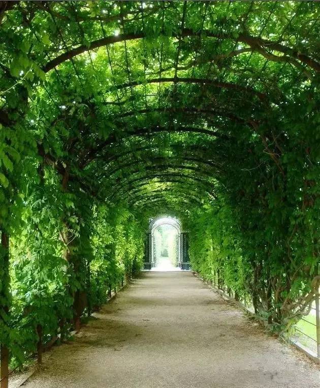 棚架绿化成了人们纳凉避暑、休息娱乐的好去处,在园林、工厂、办公区等地可营造出良好的人居环境,深受人们喜爱。用攀援植物进行棚架式绿化,依附物为花架、长廊等立体的土木结构,多用于游人活动较多的场所。