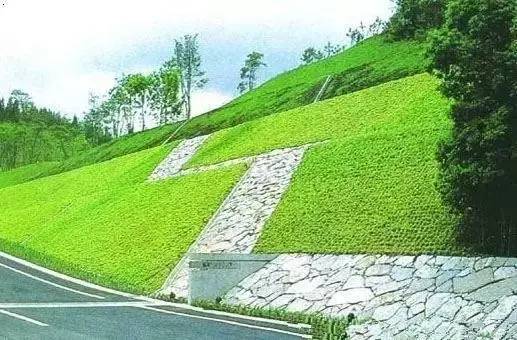 坡面绿化是一种新兴的能有效防护裸露坡面的生态护坡方式,它与传统的土木工程护坡(钢筋锚杆支护、挂网、格构等)相结合,可有效实现坡面的生态植被恢复与防护。不仅具有保持水土的功能,还可以改善环境和景观,提高保健、文化水平。