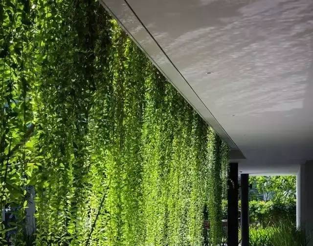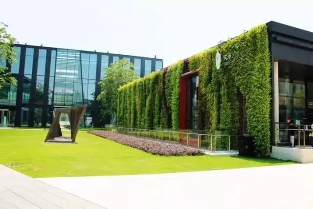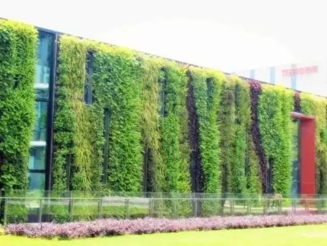 墙体的垂直绿化面积达到了800平方米,应用的绿化植物多达150种,总共15000株。