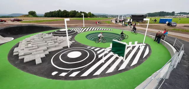 娱乐区追求自由化,既可以用来娱乐也可以用来健身。脉动区在原来的道路上设置了许多凸出的结构。除此之外,这里也是滑冰者、山地车和摩托车爱好者的赛道。