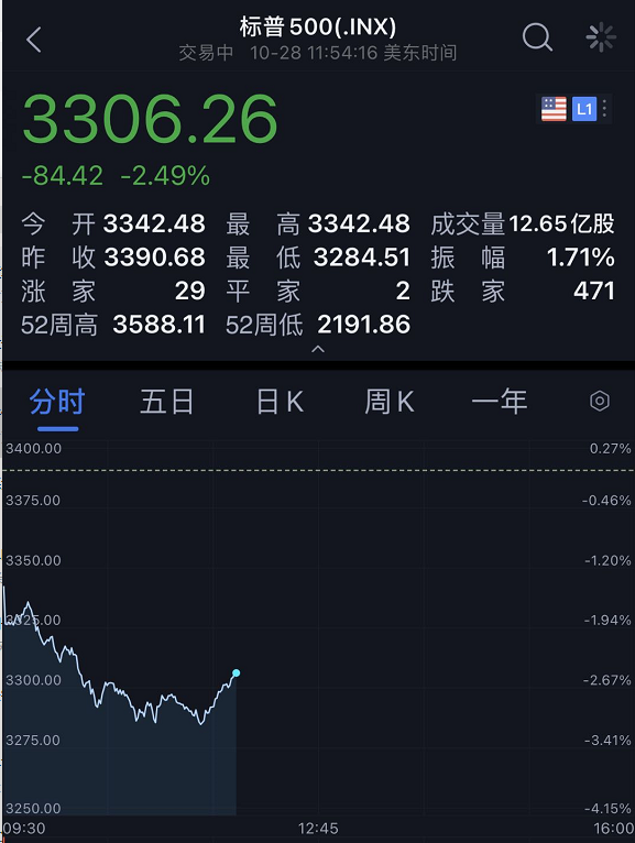 28日晚间,美股三大指数集体低开,三大指数均跌超2%!道琼斯指数盘中一度跌了884点,纳斯达克跌了近3%,标普500跌了超2.5%!