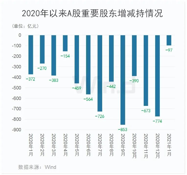 新年以来,A股市场快速冲高,但奇怪的是,与去年11和12月份六七百亿的减持金额相比,今年1月份至今净减持金额不到100亿元,市场涨的越猛,股东减持意愿反而降低。