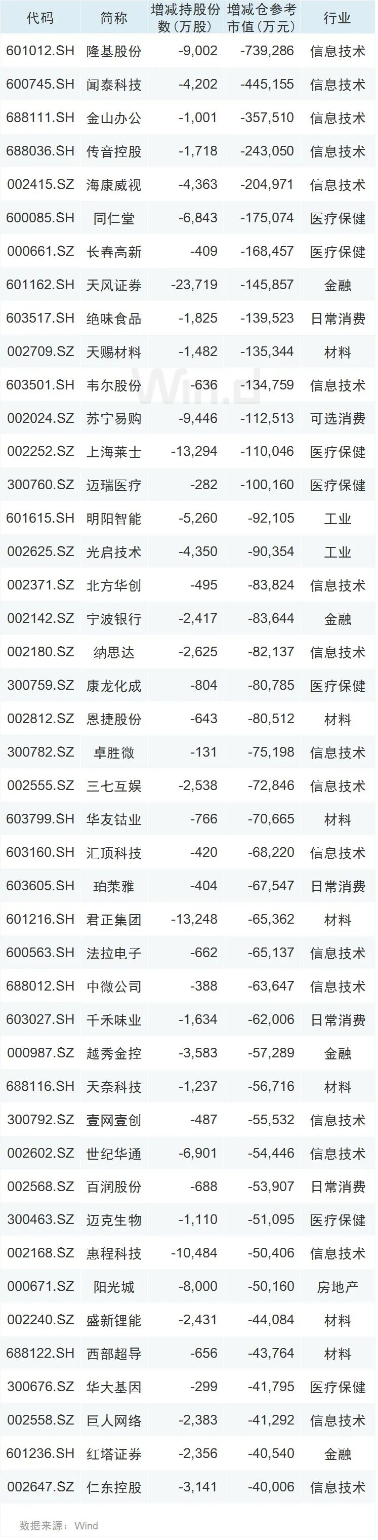 从大额减持的公司来看,Wind统计显示,去年12月以来有181家公司净减持金额超过亿元,其中44家公司净减持金额超过4亿元,隆基股份净减持金额最高,超过70亿元;闻泰科技、金山办公、传音控股、海康威视、同仁堂、长春高新、天风证券、绝味食品、天赐材料、韦尔股份、苏宁易购、上海莱士、迈瑞医疗等多公司净减持金额均超过10亿元。