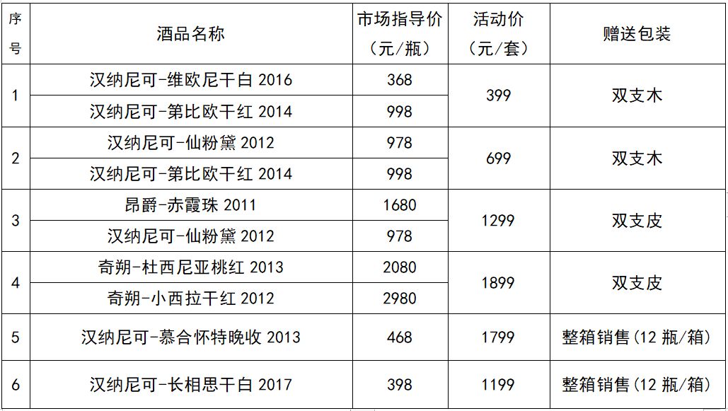 长春奇朔红酒坊专属好礼,限量发售汉纳尼可系列干红干白葡萄酒,先到先得售完为止。
