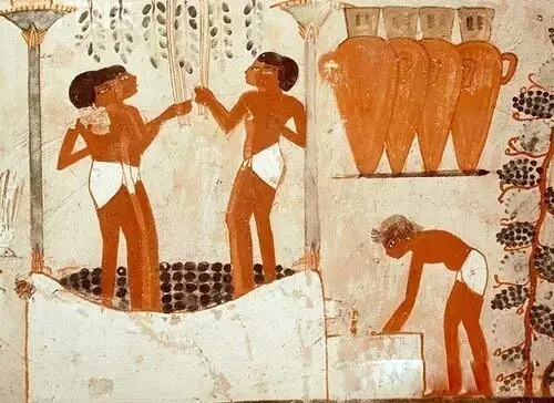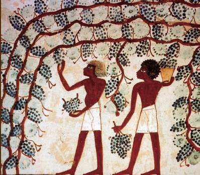 公元前1000年,古埃及的很多地方都建有葡萄园。古埃及的壁画中记录了葡萄酒酿造的全过程。每年的葡萄成熟之时,工人们开始采摘葡萄,采摘者将葡萄从葡萄藤上摘下来,然后放人筐中。