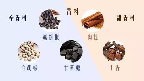 香料的香气更加微妙,既可能来自葡萄品种自身,也可能来自橡木桶。形影不分的西拉和歌海娜(Grenache)分别以黑胡椒和白胡椒的辛香见长,甜香料香气则广泛存在于各种甜美优雅的红葡萄酒中。