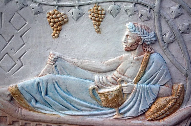 相传巴克斯是西姆莱女神之子,他从朱庇特主神的腿中降临出来,畜牧神海尔梅斯为其接生,有关他的出生故事是记录在梵蒂冈博物馆的一块古代浮雕上的。