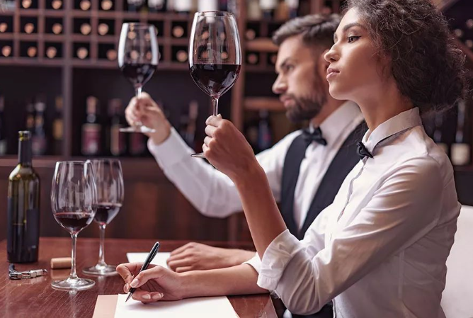 红葡萄酒液中的色素在与口红接触过程时,容易相互反应在品酒者的唇上留下深深的“酒红色”。因而,女性朋友在参加品酒会时,不适宜涂抹颜色、气味过于浓重的口红。这也为了避免口红中的化学物质与酒液接触,对酒香产生干扰,影响酒品质量,从而影响品酒人对葡萄酒的品鉴体验。