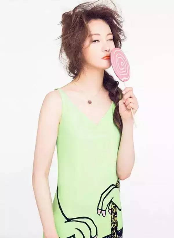 爽妹子身穿一件绿色带点抽象图案的背心上衣,裙子整体的清新舒适的绿色让人觉得心旷神怡,写真集中故意的杂乱不堪的发型,更是透出了郑爽少女的率性与随意感。