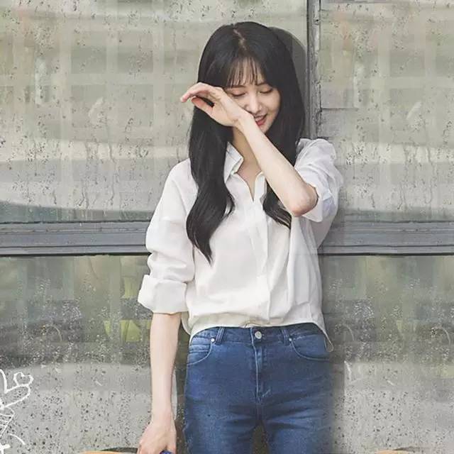 这套前短后长的POLO立领白衬衫加牛仔裤的搭配让郑爽看起来清纯可人。前短后长的不规则白衬衫做工非常精致,又适合任意体型。郑爽穿上这一套衣服绝对又潮又清纯。