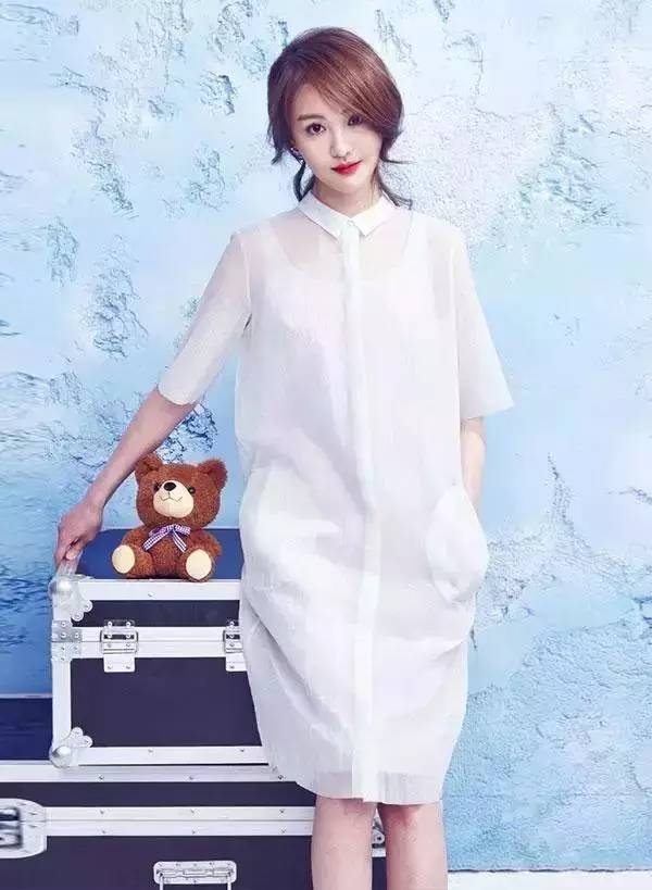 这件带点透视效果的衬衫裙,依然展露出了郑爽的气质,裙子带点感性与优雅的休闲风格,让人看起来非常的舒适。公主风的白色连衣裙、女神范儿的欧根纱连衣裙造型都能很好展现出爽妹子的个性风格。