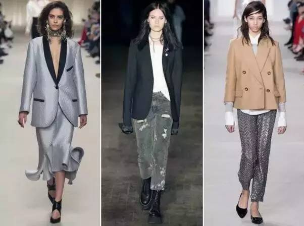 在今年秋冬T台上,其实也有很多西装外套横行,五花八门,并且完全没有制服的影子。