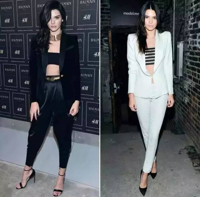 Kendall Jenner(肯达尔·詹娜)喜欢把西装和bra配在一起,娘man平衡。