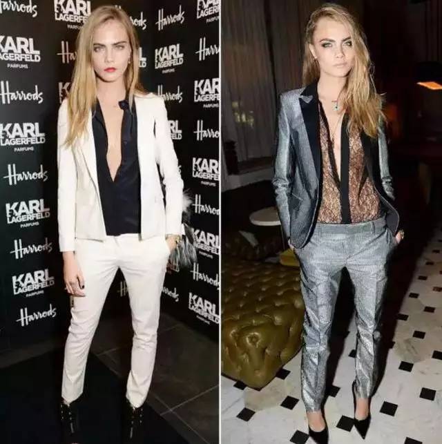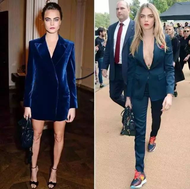 个儿高腿长的超模军团也是西装外套种子选手。比如Cara Delevingne(卡拉·迪瓦伊),拿开到深v的衬衫配西装,演霸气总攻,