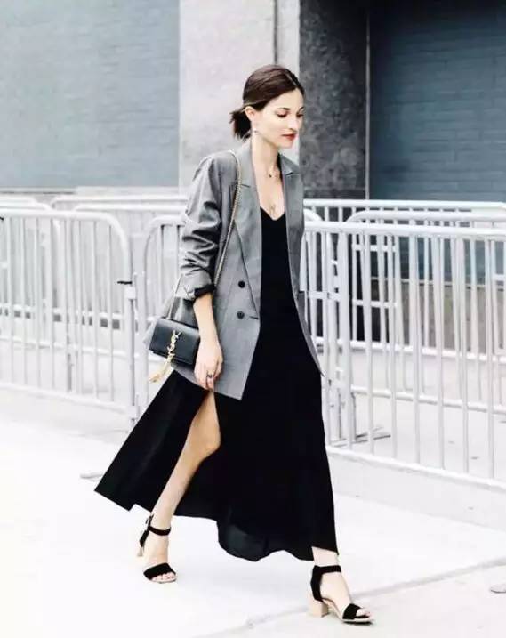 吊带睡衣不像真空或是bra那样过于暴露,娘娘的面料和中性西装的男人味中和得刚刚好,哪怕是不太玩得转性感的女生,穿这身也可以妩媚得理直气壮。
