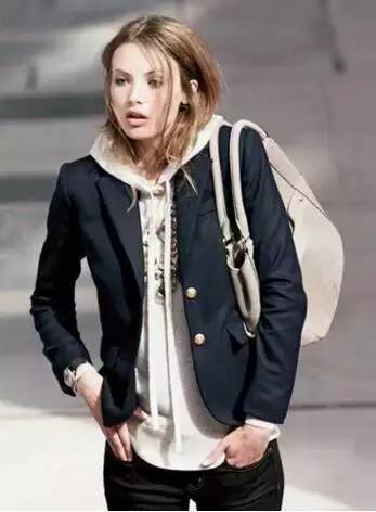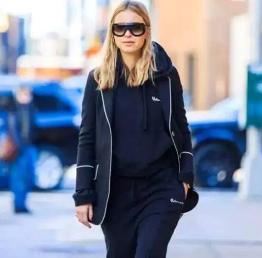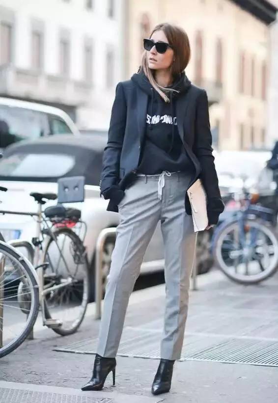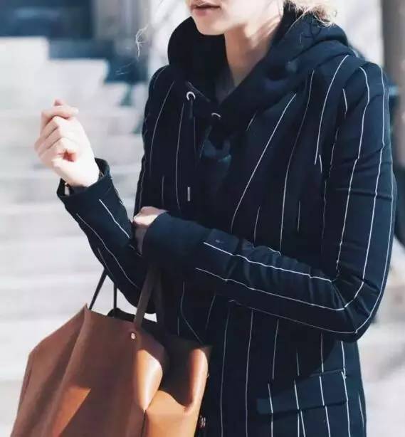 运动卫衣廓形比较宽松,所以建议客官们挑经典中长款的西装外套。太短太干练的款式和oversized卫衣会有点违和,太长则容易同流合污,显得邋遢。