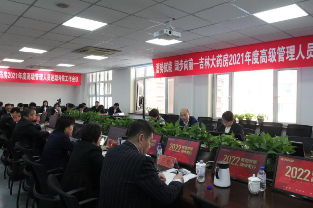 首先,亚泰医药集团副总裁、吉林大药房董事长兼总经理马东梅在会前发表讲话。马总指出:2021年,面对复杂严峻的外部环境和激烈的市场竞争,在集团公司、医药集团的科学指导下,企业经营班子及全体员工用汗水浇灌收获,以实干努力前行。此次述职考核工作,对全面提升高级管理人员战略管理能力、组织领导能力、计划落实能力和职业素质,为打造一支符合吉林大药房战略发展的职业经理人团队起到重要作用。她强调:全体高级管理人员在谈总结的同时,要找差距、补短板,回顾成绩鼓足信心;谈计划的同时,要重落实,出实效,笃定目标重在达成,有勇气、有担当、有锐气、有朝气,要以实际行动为企业经营决策建言、发力。
