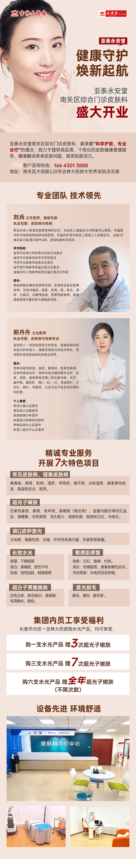 “健康守护 焕新启航”——亚泰永安堂南关区综合门诊皮肤科盛大开业!
