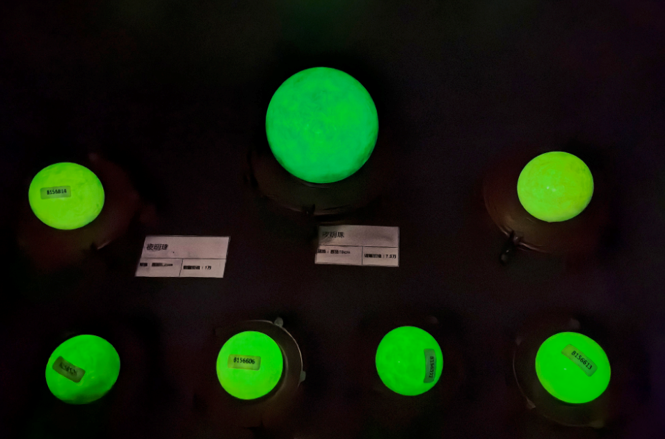 种类分类:可分为永久发光的夜明珠和长余辉蓄光型夜明珠。前者靠自身放射性同位素激发发光,后者需外界光源激发后才能发光。