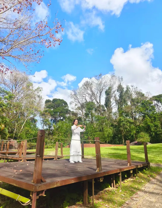 打坐 · 与自己对话 在雨林深处,听着鸟声,闭上眼。 没有KPI,没有消息提醒, 只有你和呼吸,慢慢相遇。