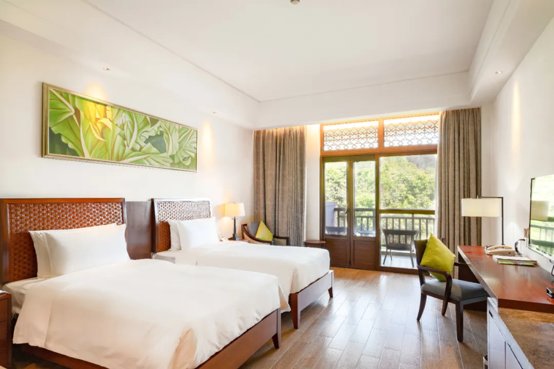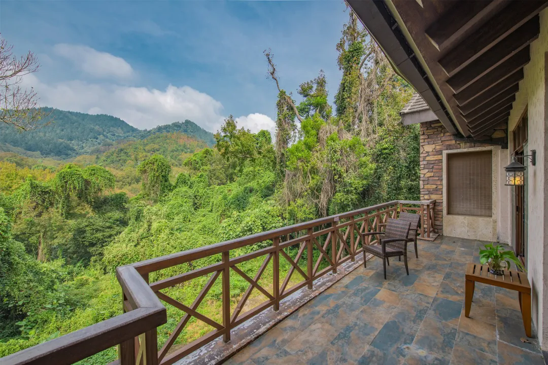 观山阅景:每间客房都配备了宽敞的阳台。主楼部分房间正对五指山主峰,你可以泡上一壶茶,静看云起云落 。