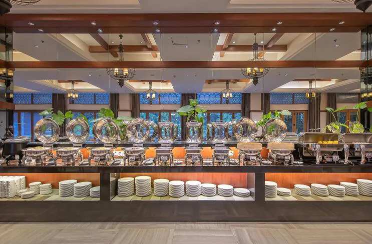 地道风味: 中餐厅取材讲究,甚至部分食材直接来自酒店自家的菜地。一定要尝尝特色的亚泰一号酸汤鱼、五指山黄牛肉、五脚猪以及鲜嫩的野菜,每一口都是雨林的味道 。