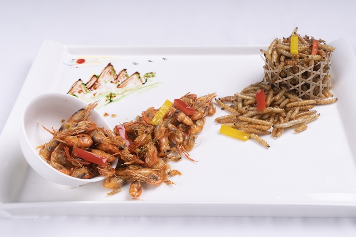 用料:选用海南五指山本地河虾和竹虫 油炸
