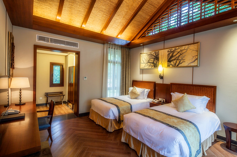 - 便利设施:雨伞、多种规格电源插座、中央空调、书桌、熨衣设备、房内保险箱、衣柜/衣橱、220V电压插座、电子秤、闹钟、针线包、遮光窗帘、手动窗帘、床具:毯子或被子、备用床具、房间内高速上网、客房WIFI覆盖免费