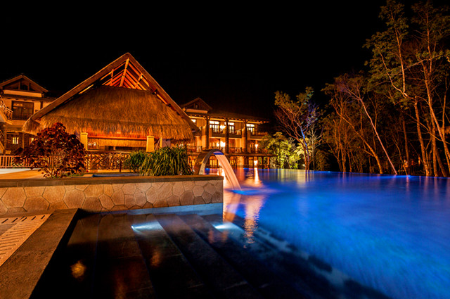 酒店周边环绕着原始茂密的热带雨林,雨林中有沟谷小溪,有激流飞瀑,空气清新甜润,负氧离子平均含量达到30000个/㎝³以上,是一处养生休闲度假的绝好去处。