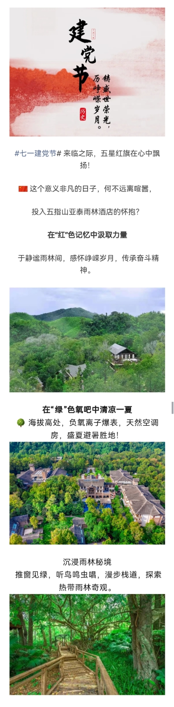 七一·致敬红色 | 五指山亚泰雨林酒店,绿意清凉中礼赞光辉岁月!