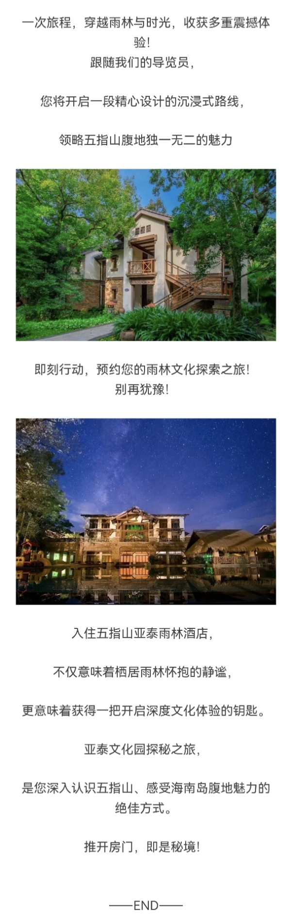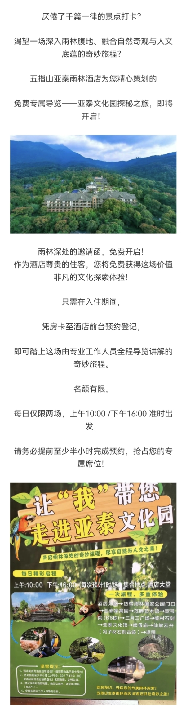 推开雨林之门,解锁专属秘境!五指山亚泰雨林酒店邀您免费畅游亚泰文化园!