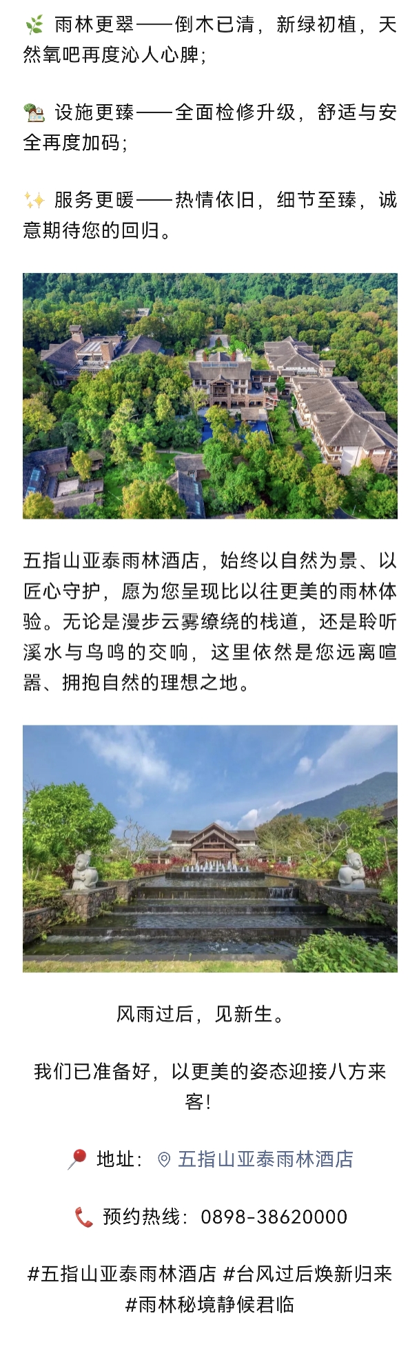 风雨洗礼,焕新归来 | 五指山亚泰雨林酒店以崭新面貌静候您的光临。