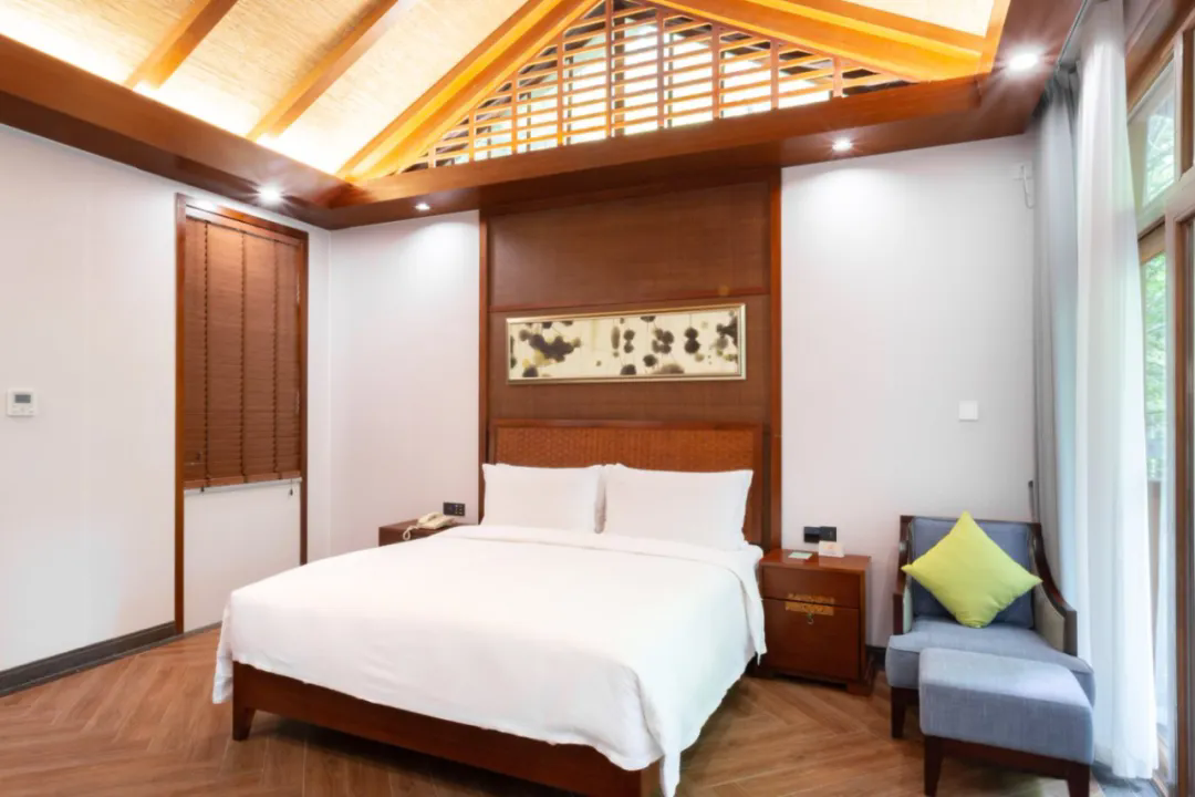 酒店拥有207间豪华客房及套房,每一间都宽敞明亮,配备有舒适的床品与现代化的设施 ,让你在享受自然美景的同时,也能拥有一个宁静而舒适的休憩空间。入住雨林怀抱的客房或别墅,晨起推窗,满目绿意奔涌而来,清新的空气扑面而来,鸟鸣山涧,是自然为你奏响的晨曲。夜晚,万籁俱寂,你可以伴着轻柔的风声和虫鸣声安然入睡,仿佛与大自然融为一体。