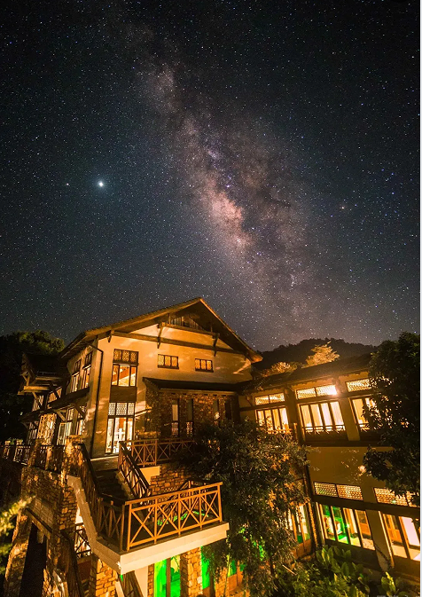 这里是名副其实的天然氧吧,森林覆盖率超过84.4%,负氧离子平均含量达到30000个/㎝³以上,高的时候甚至可达每立方厘米6万个 。漫步在酒店的每一处角落,都能呼吸到清新甜润的空气,每一次呼吸都是对肺腑的纯净洗礼,唤醒久居尘嚣的倦怠灵魂。