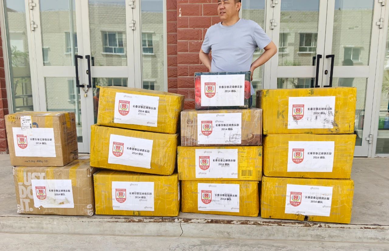 故事还要从4月初说起。亚泰青训U11队的小队员们在训练之余,偶然从助理教练张添羽口中得知,远在4600公里外的新疆策勒县,有一群和他们一样热爱足球的小朋友。然而,那里地处偏远,环境艰苦,没有亚泰净月基地这样良好的训练条件,足球装备更是极度匮乏。得知这个消息后,在教练组的带动下,小队员们自发地行动起来,纷纷将自己闲置的球衣、球鞋和背包等足球装备捐赠出来。整整12大箱,装满的不仅是足球装备,更是亚泰U11队小球员们满满的爱心。
