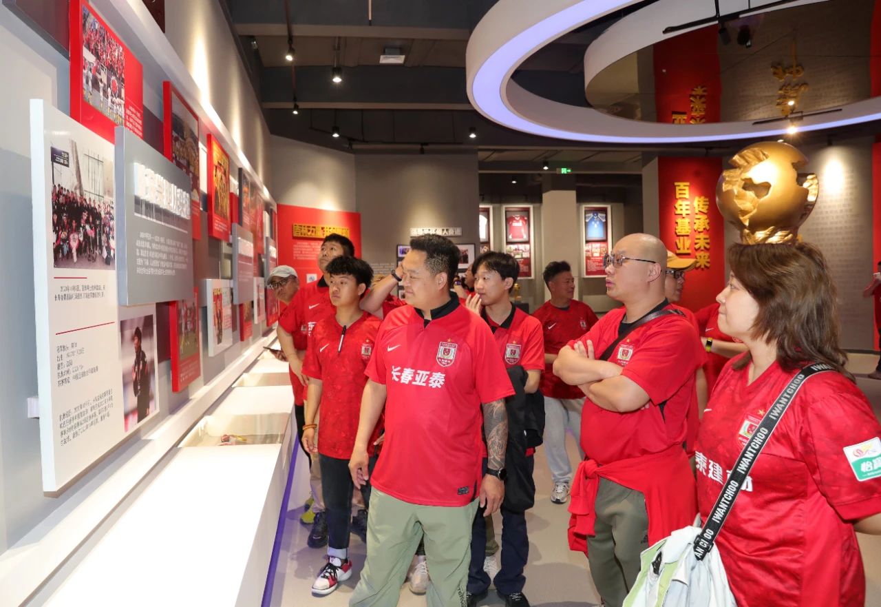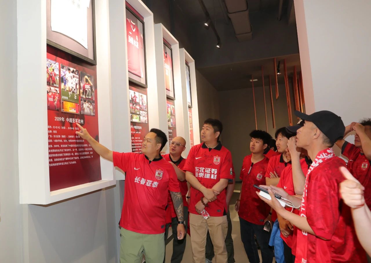 有人说,博物馆是一座城的眼睛,可以看见历史,更能看见未来。亚泰文化馆就是一座可以看见长春足球的历史和未来的队史馆。聋哑人球迷朋友足球文化之旅的第一站首先来到了亚泰足球文化馆。在这里,聋哑人球迷朋友通过文字和图片,穿越时光隧道,领略长春亚泰的近30年的发展历程。一件件承载着俱乐部记忆的老物件、一座座闪耀着荣耀的奖杯,深深吸引了他们目光,让他们对亚泰的历史有了直观而深刻的感受。