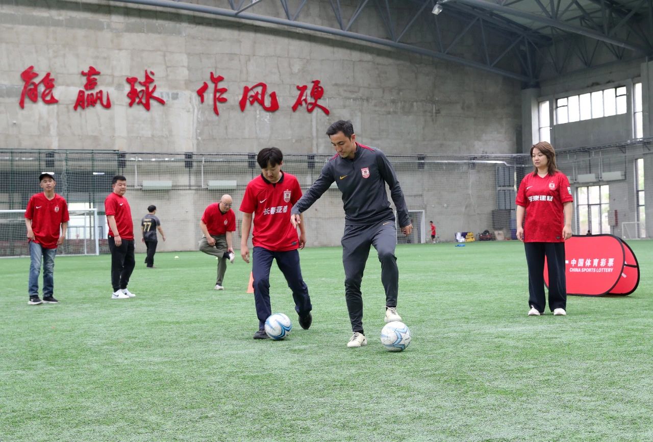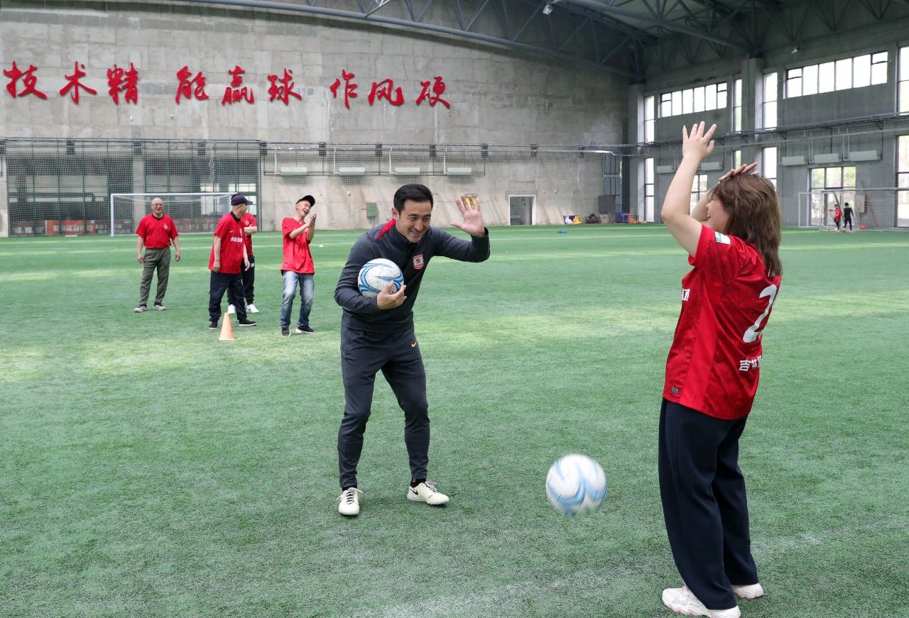 走出亚泰文化馆,聋哑人球迷朋友在工作人员的引领下参观了亚泰足球净月基地,并来到了室内足球馆。在这里,亚泰青训总监张笑飞为他们量身定制了一堂生动有趣的足球兴趣培养课。张笑飞以耐心和专业,引导他们感受足球的魅力,他们在球场上尽情奔跑,脸上洋溢着纯真的笑容。“健全人踢球交流的方式多种多样,但基本上靠喊、靠听。可是听障人既听不见,又喊不出来,他们的训练和比赛只能靠眼神和手势交流,非常不容易。”张笑飞说。