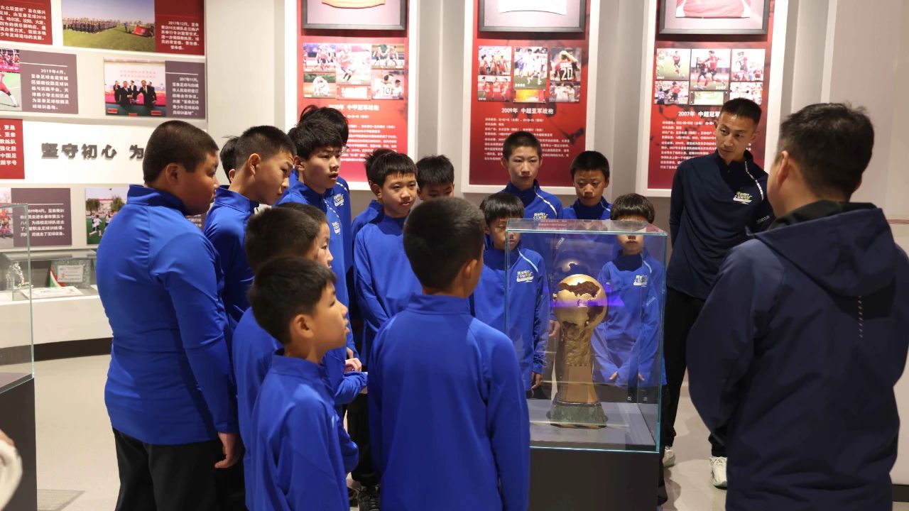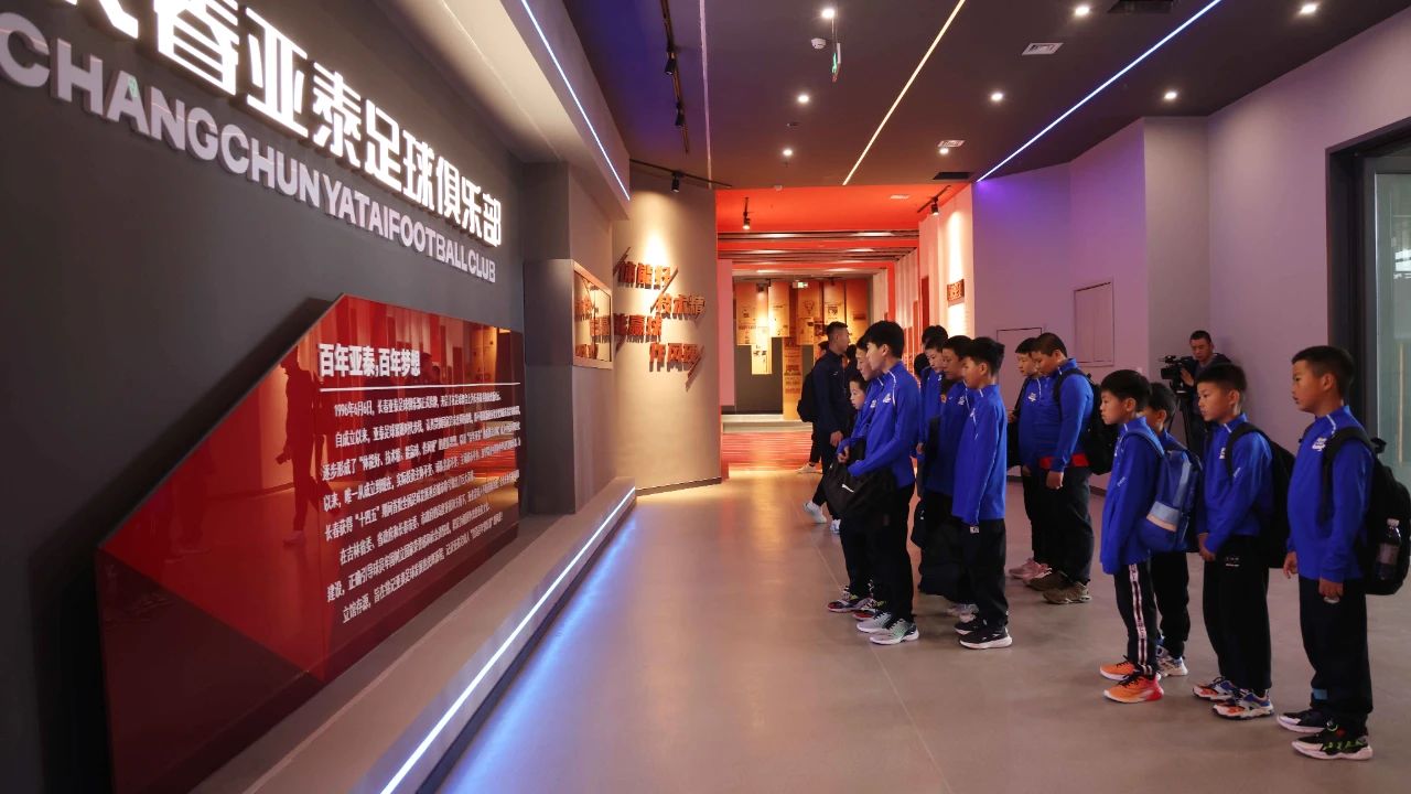 4月19日下午,受长春亚泰足球俱乐部的邀请,张锡军和孩子们走进了记录长春亚泰成长历程的足球文化馆。在时光隧道中,这群大山里的足球少年第一次来到了上世纪90年代的长春。那时,长春亚泰刚刚成立,引进了一批和他们年龄相仿的球员,经过五年左右的苦练,“亚泰96一代”初长成,开创了一个属于他们的黄金时代。在文化馆里,亚泰足球的经典时刻、百场里程碑、奖杯等展区吸引了孩子的目光,“老师,这个奖杯是真金的吗?”“亚泰中超夺冠时我还没出生呢!”孩子们围绕着展品热烈讨论着。在讲解员的指引下,他们打开了了解长春亚泰的大门,感受到俱乐部的底蕴。