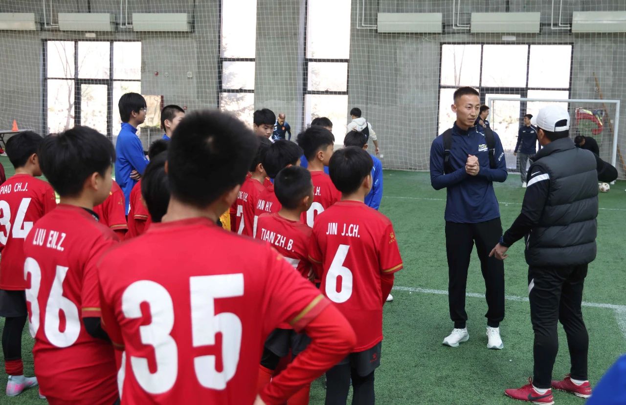 在天然草皮球场,孩子们难掩兴奋,蹲在场边摸着柔软的草皮。为了欢迎宝山中学的孩子们来俱乐部参观,亚泰青训U11梯队主教练张锡勇专门为大山里的足球少年准备了一堂训练课。从热身环节的趣味互动,到战术训练的分组对抗,亚泰U11队的小球员热情地带动宝山足球少年融入其中。在对抗环节,宝山足球少年逐渐放下拘谨,大胆地展现足球技能。在复盘指导中,张锡勇耐心为宝山足球少年们讲解训练中出现的问题。