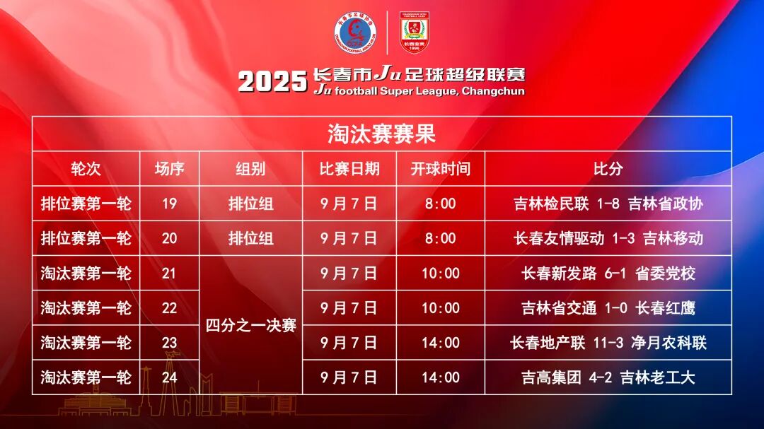 9月14日,本届长春Ju超将展开半决赛及排位赛第二轮的较量,长春新发路队与长春地产联队、吉林省交通队与吉高集团队展开对决;吉林检民联队与长春友情驱动队将进行11-12名排位赛较量,吉林省政协队与吉林移动队将进行9-10名排位赛较量,根据赛事规则,5-8名排位赛的对阵情况将经过抽签决定,抽签将于近日举行。