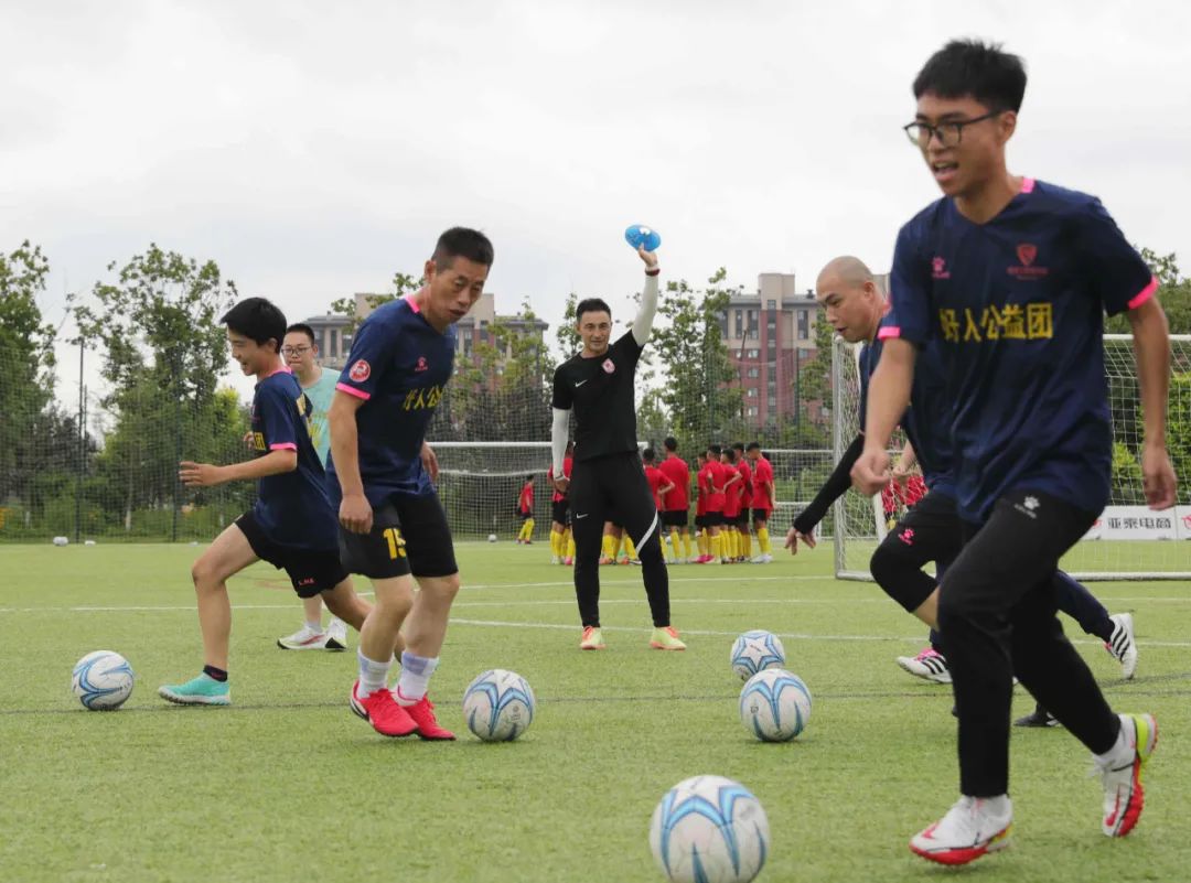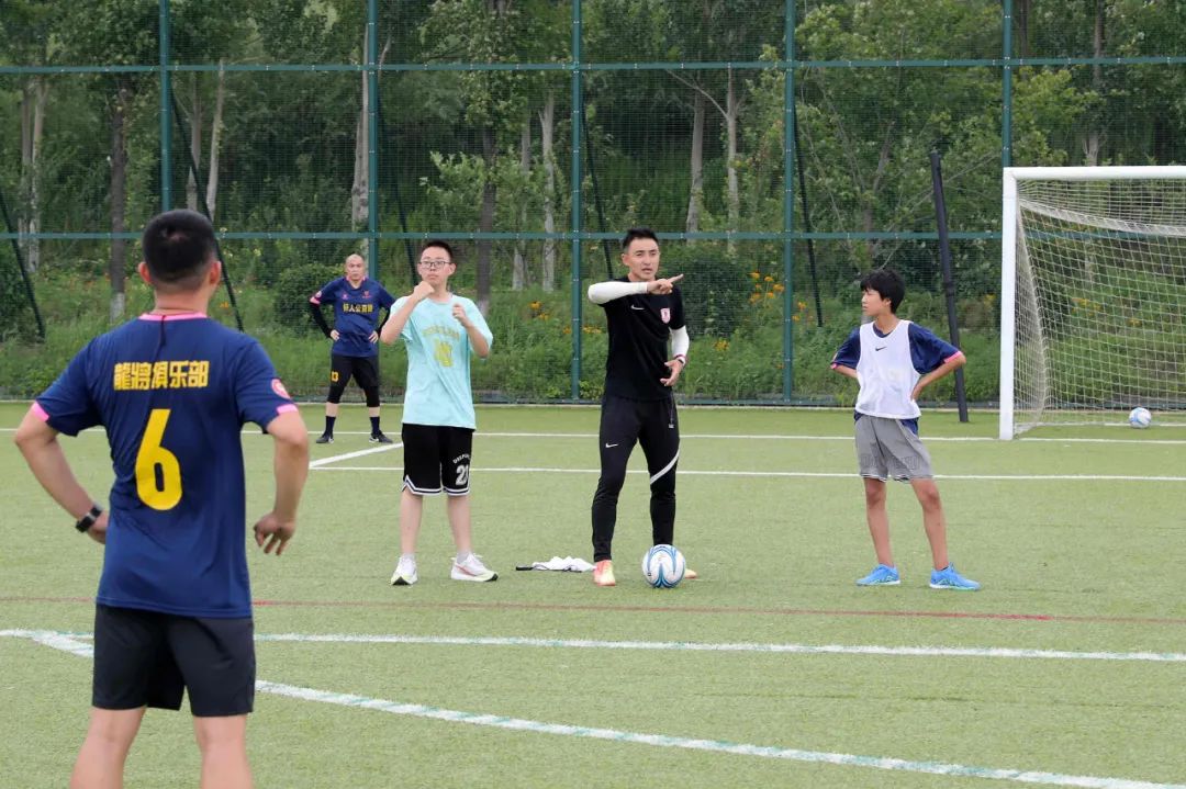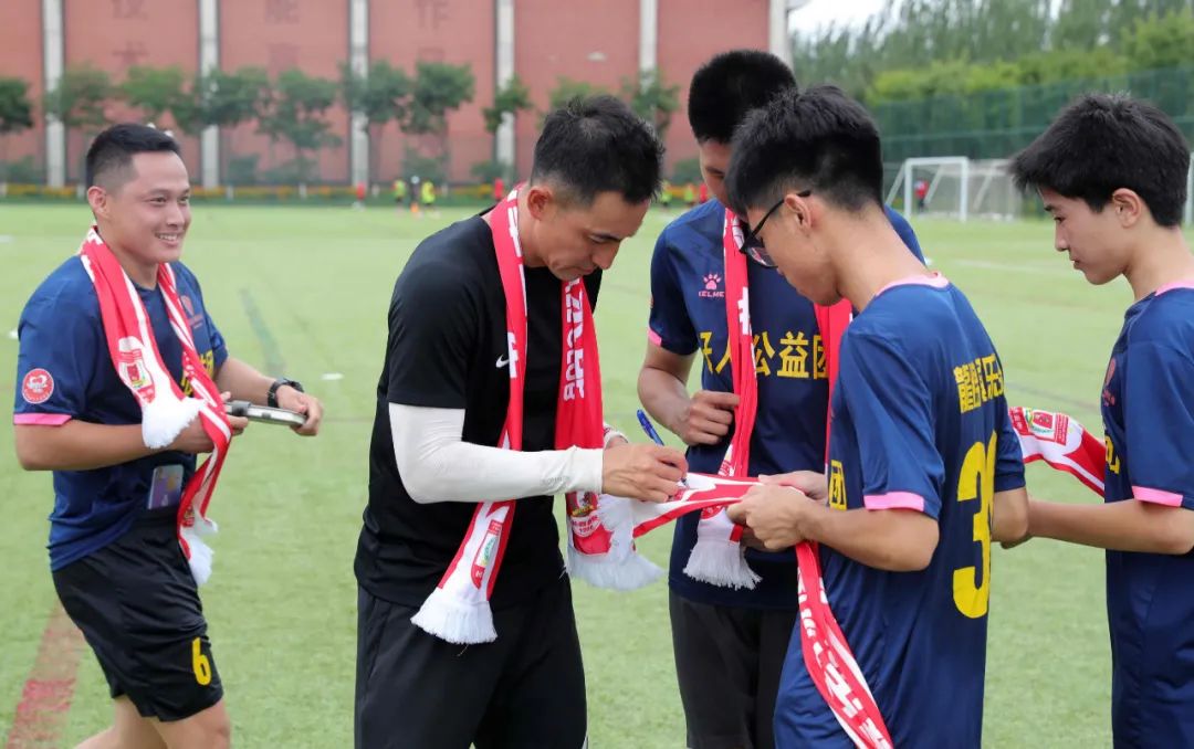 2018年,当时还是球员的张笑飞曾走进长春大学特珠教育学院,与学校的盲人足球队和聋人足球队的同学们一起互动,对残疾人从事足球运动的不易体会深刻。时隔五年,已转型教练的张笑飞针对聋哑人足球队的特点,在课程设计上为四平龍将足球队量身定制了一堂专业足球课——用红黄蓝3种颜色的标识牌作为指令,先通过手语翻译讲解训练课的内容,然后通过标牌颜色强化热身运动、传接球、射门等训练内容。“他们与我们一样热爱足球运动,虽然他们听不到我的声音,但依然很认真看我讲。从他们身上,更能感受到足球带来的快乐。”
