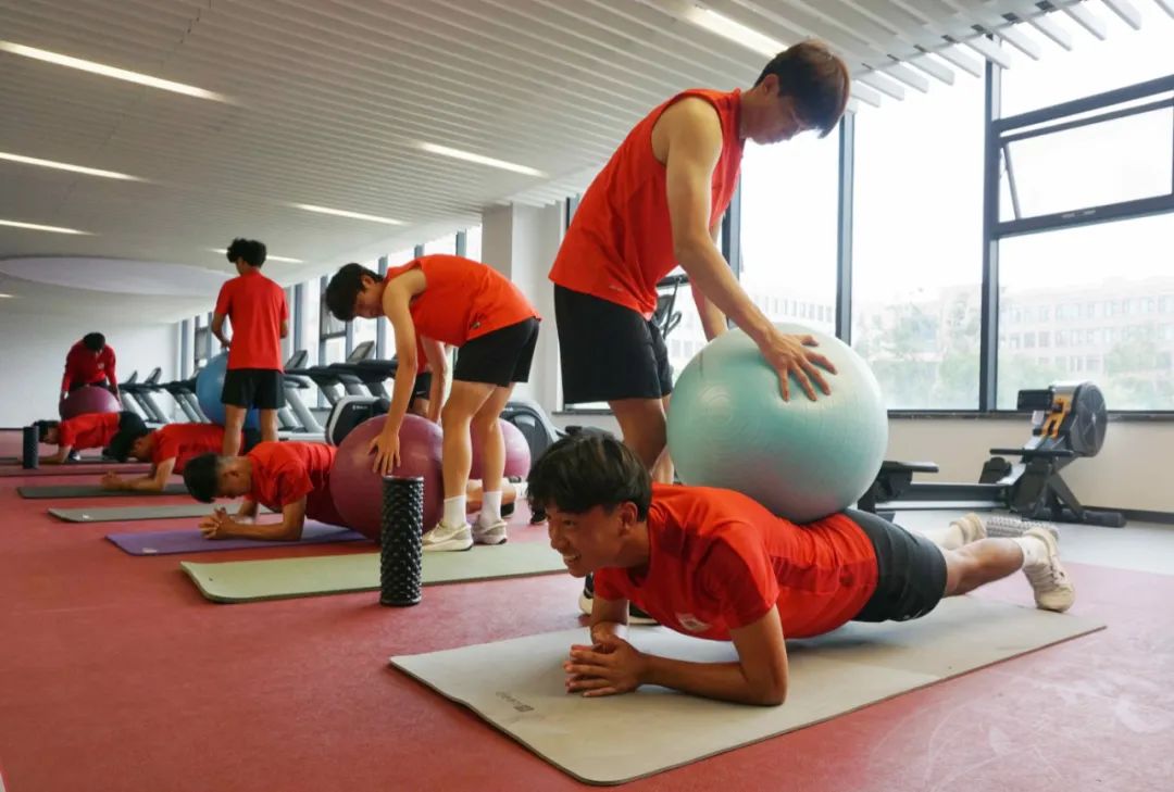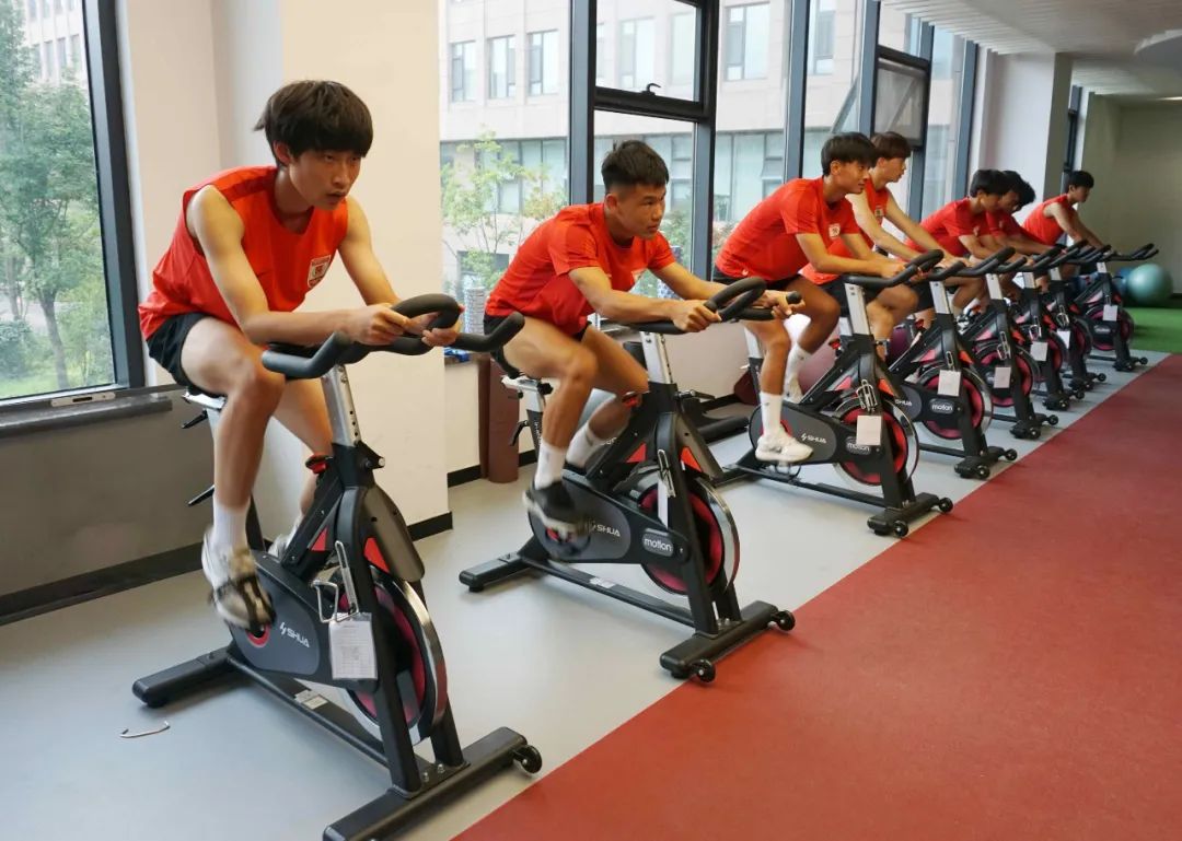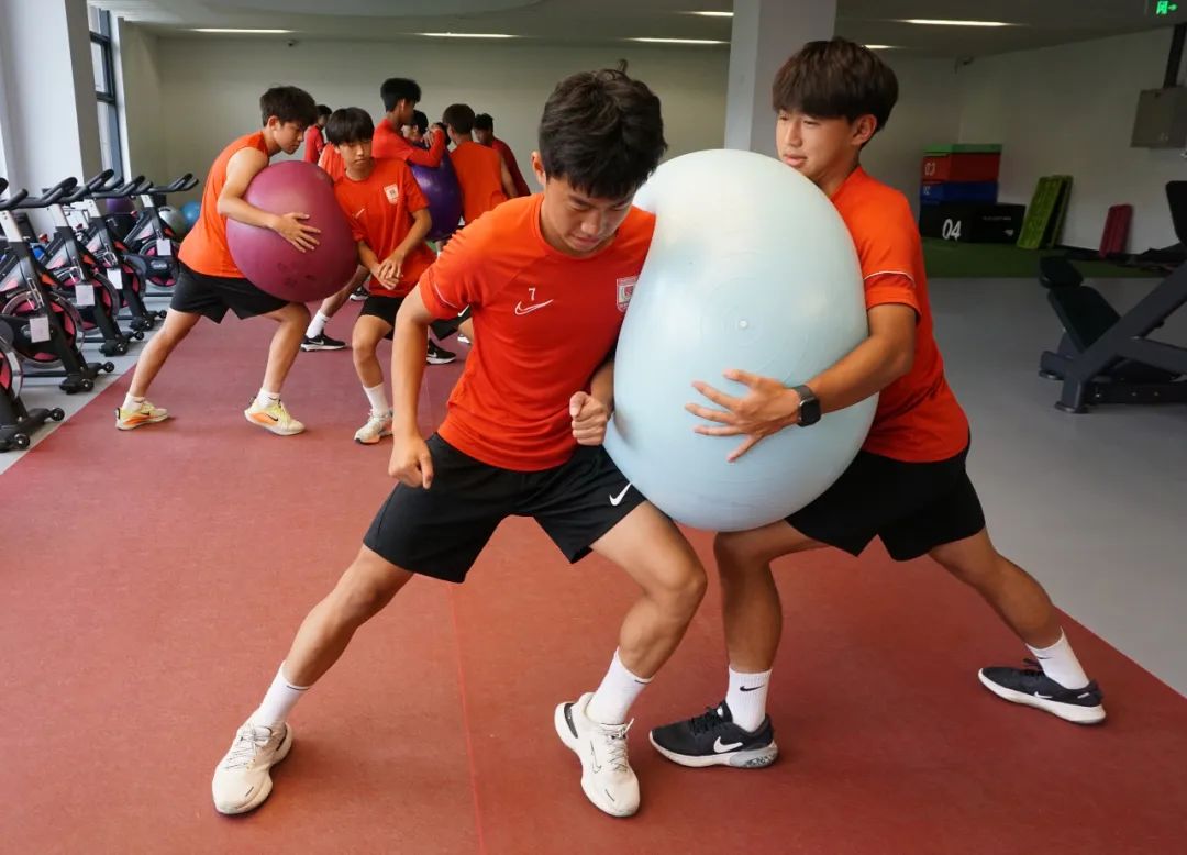 长春亚泰U16队在亚泰净月基地健身房进行力量训练