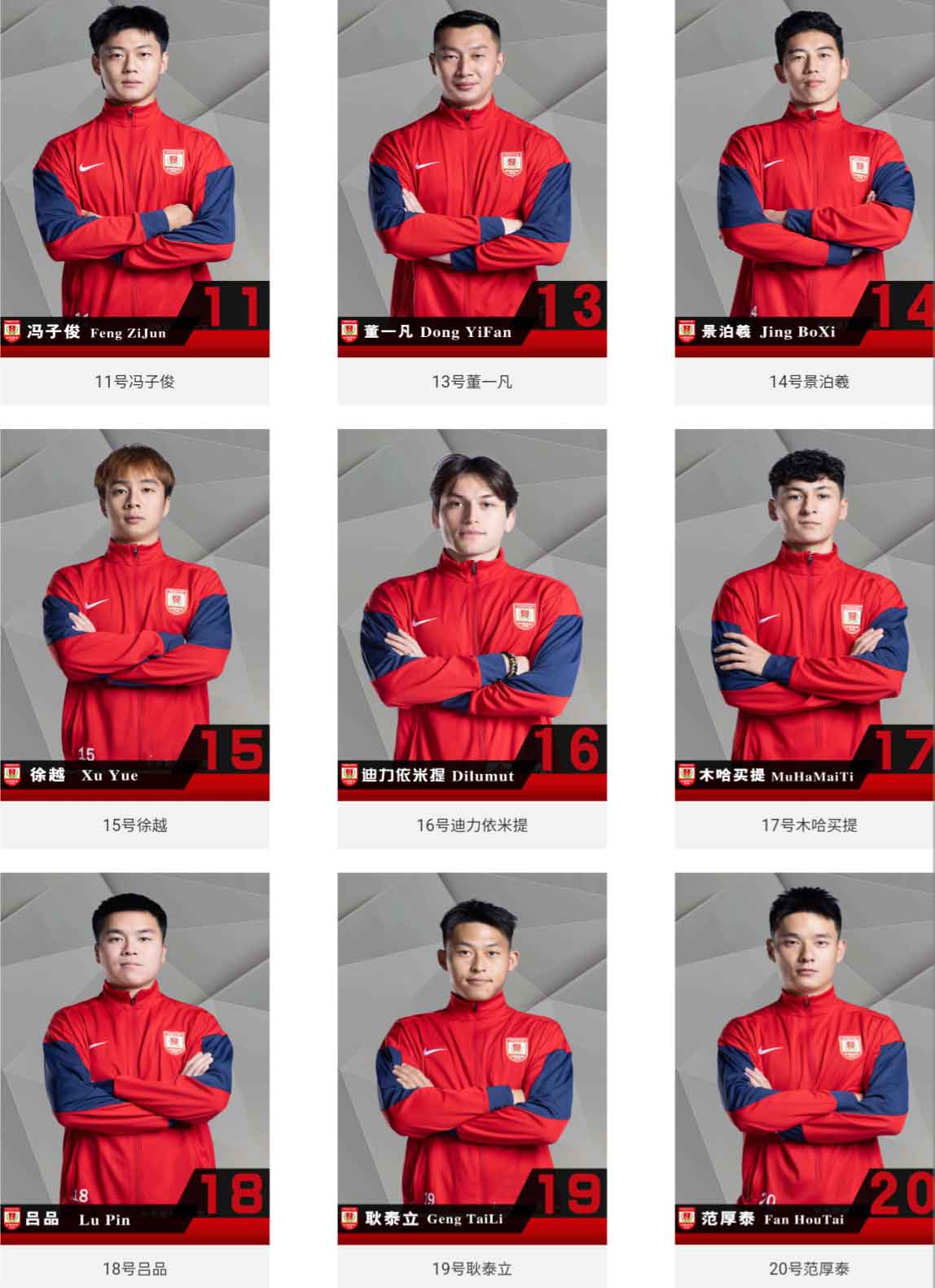 相比之下,谭龙、吴亚轲、严智宇、孙国梁、安智诚继续保留上赛季使用的号码,景泊羲选择了14号、徐越选择了15号、迪力依米提选择了16号、吴俊杰选择了41号、樊超选择了44号、杨镜帆选择了45号。此外,今年从U21队升入一线队的杜恺乐、武之程、范厚泰、陆一鸣、魏凯乐、巴特分别选择了3号、8号、20号、31号、34号。