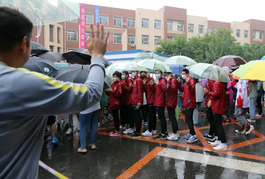 亚泰 U15 队主教练尤龙送球员考生进考场
