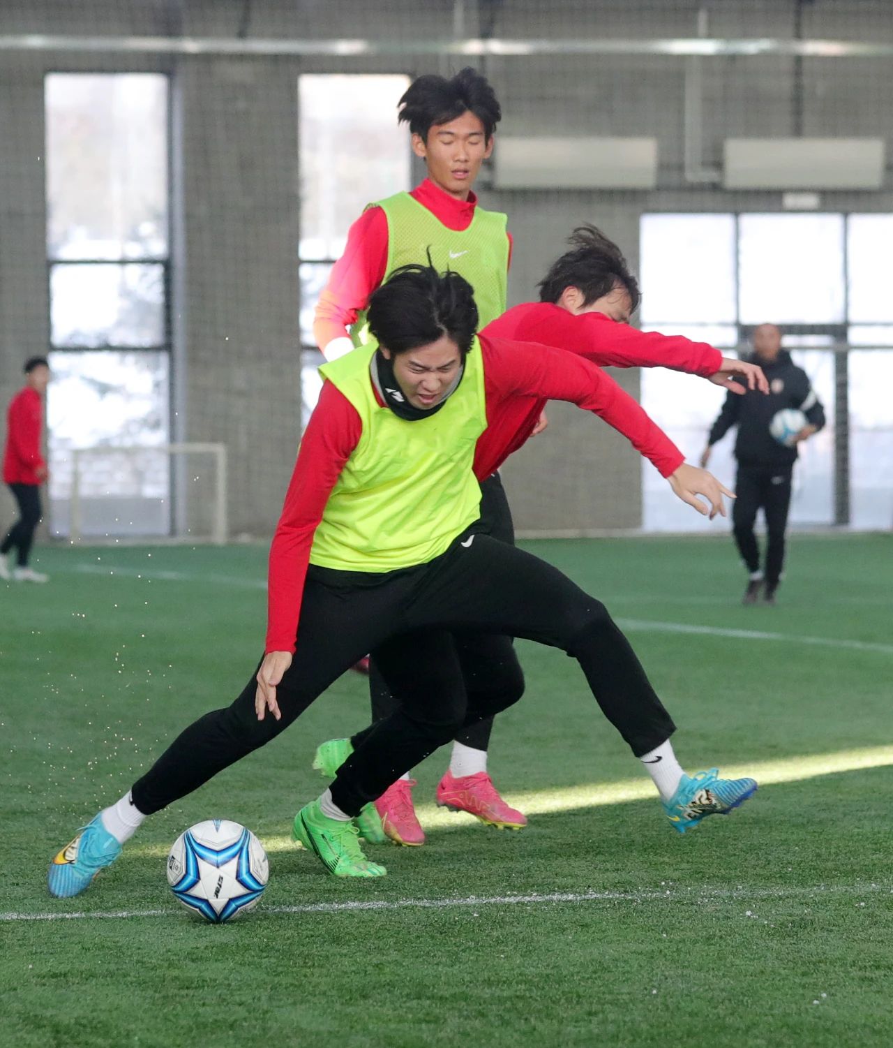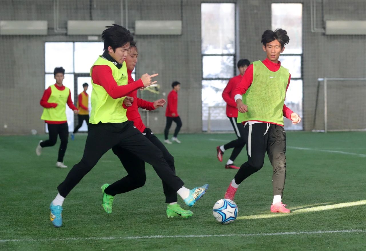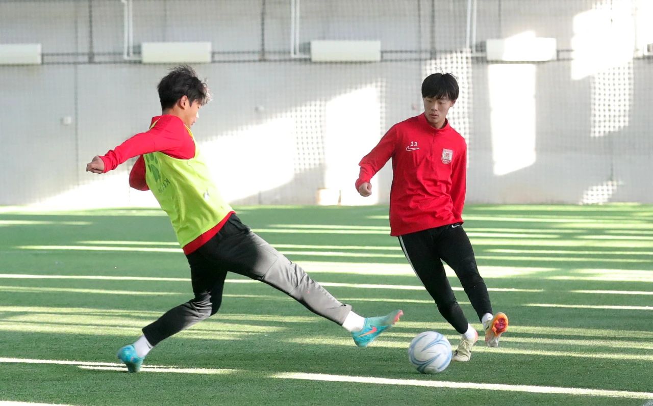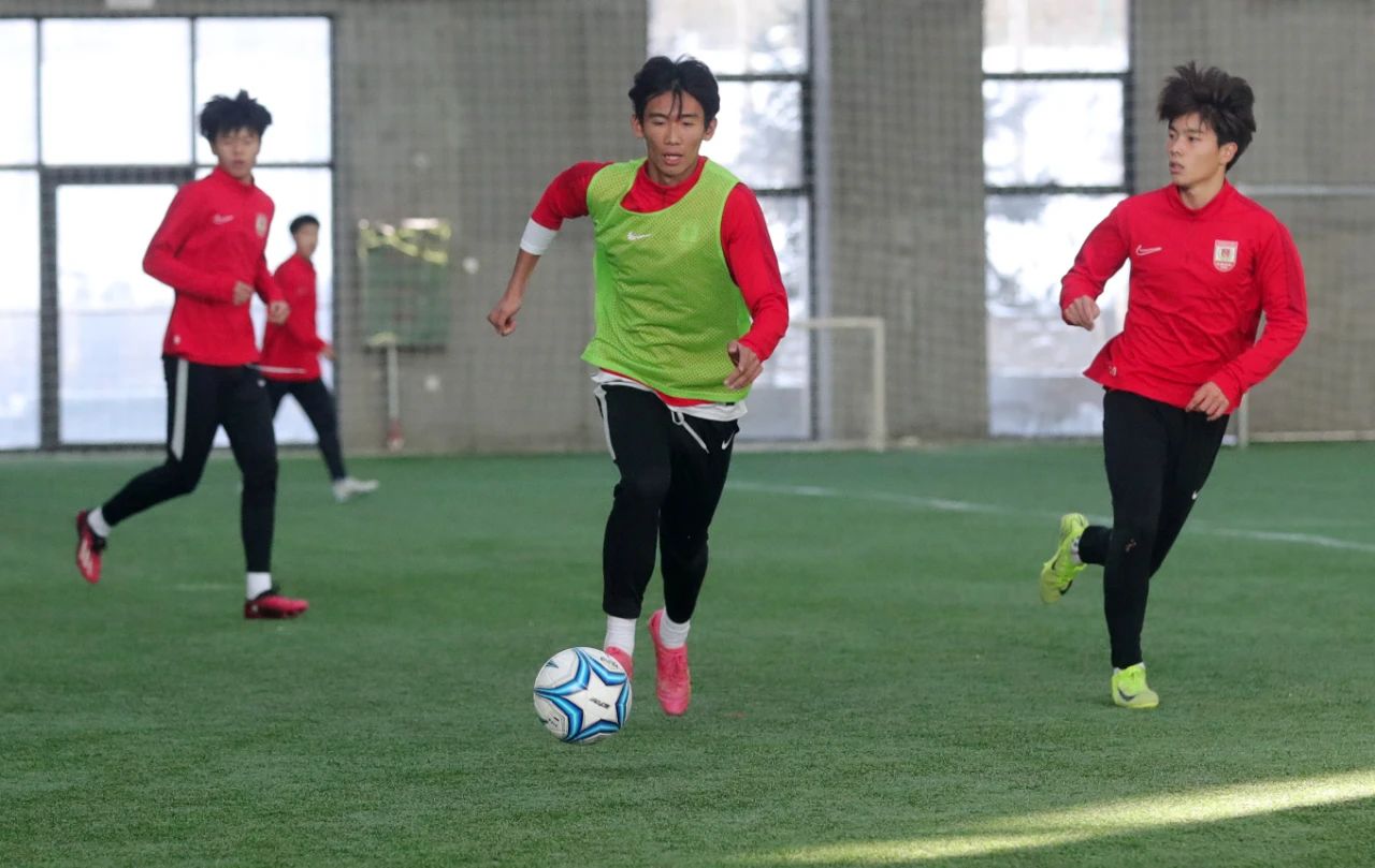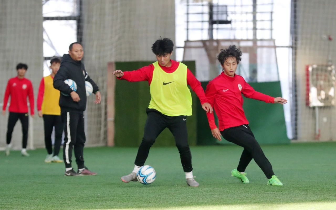 图一:13时-15时是亚泰净月基地室内足球馆留给亚泰U16队的训练时间。作为每天第一支走进室内足球馆训练的队伍,教练组希望给亚泰青训打个样。他们根据球员的年龄,坚持“从严、从难、从实战出发,坚持大运动量训练”的要求,从细节入手,狠抓训练作风。