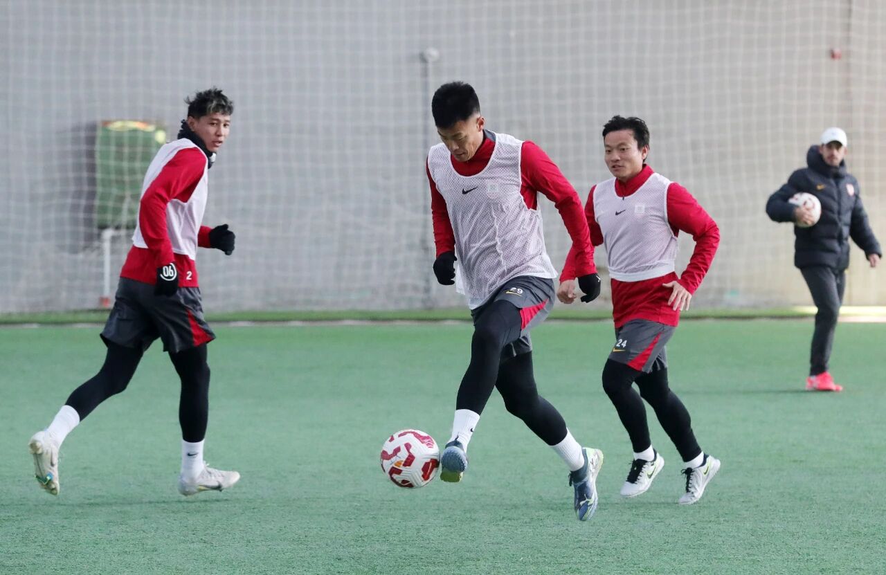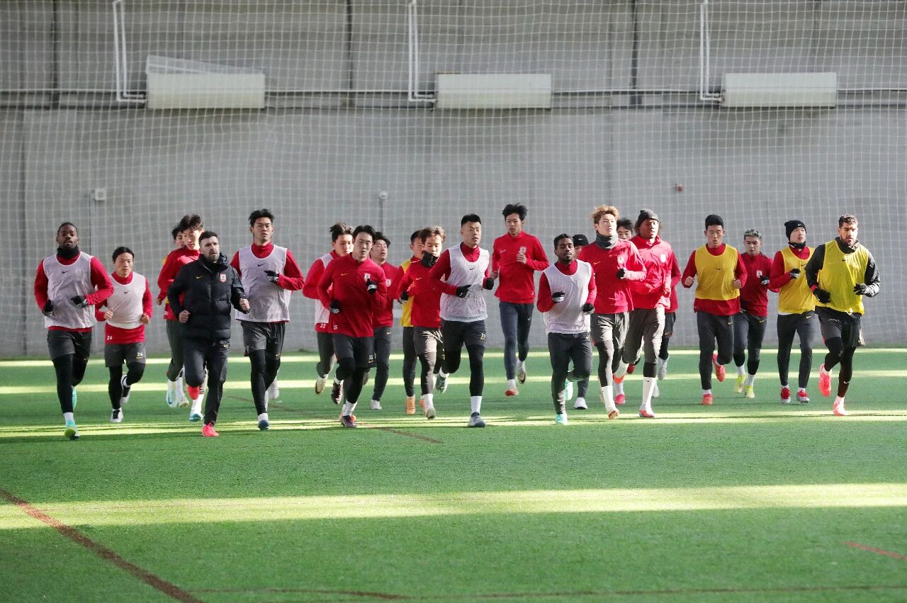 11月18日,长春最低气温已降至零下9摄氏度,不适合长春亚泰的室外训练。在教练组的带领下,全队来到经过国际足联认证的亚泰基地室内足球馆进行训练,确保训练质量与球员身体状态。