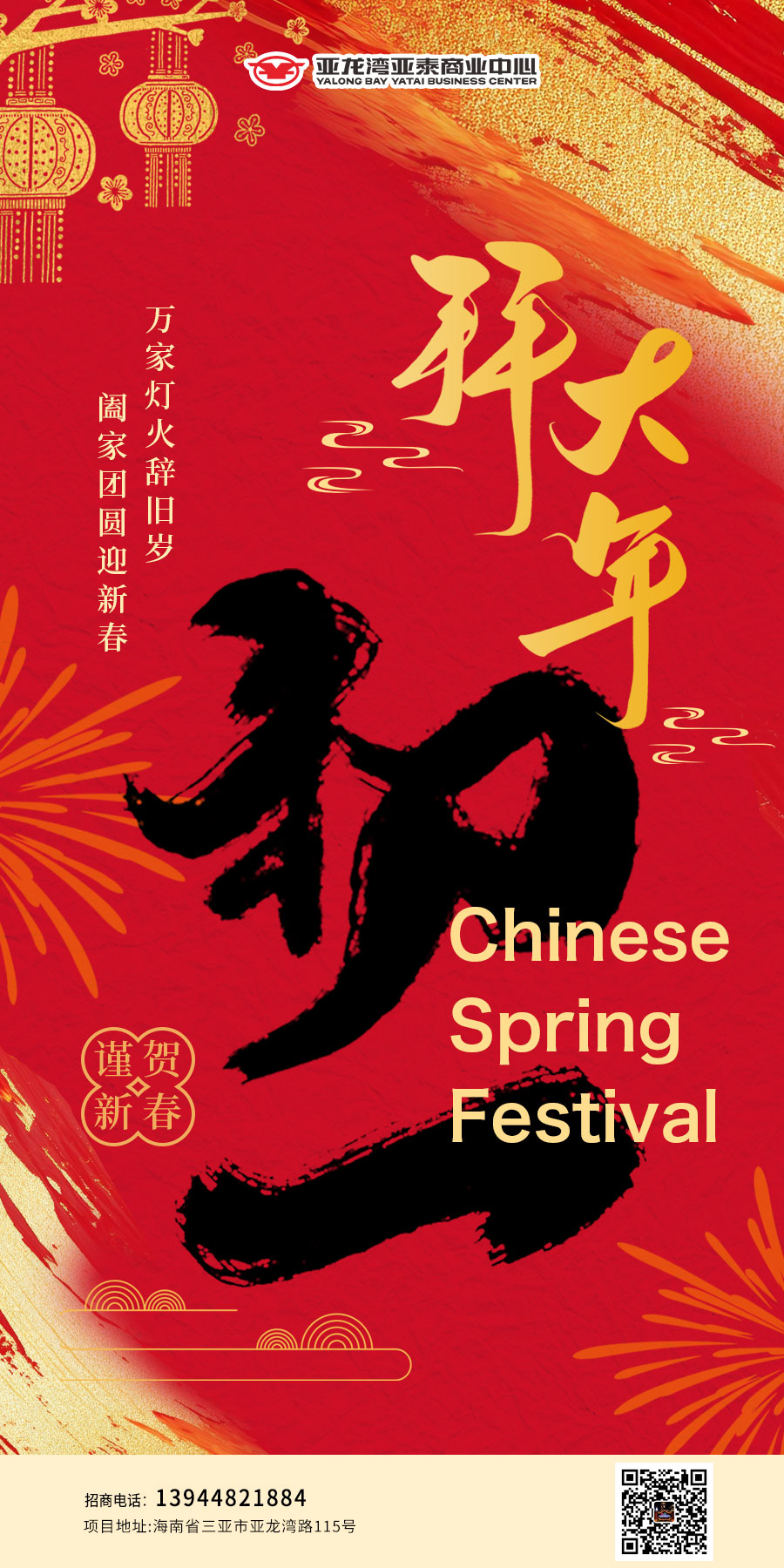 大年初一拜年啦!亚龙湾亚泰商业中心给您拜年啦!祝您新春大吉,阖家安康!